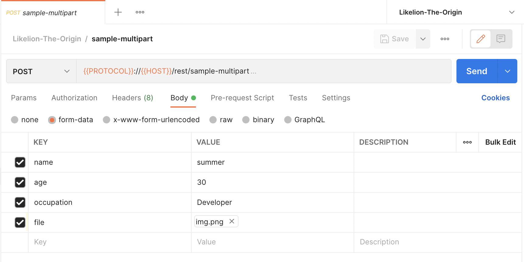 - json과 multipart form-data를 많이 활용