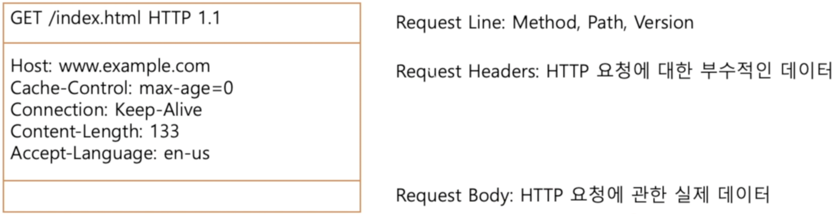 - Host: 실제 요청이 어떤 컴퓨터로 가는지를 정의하는 부분은 아님. 요청할 때 어디로 요청을 했는지가 들어있음. HTTP요청이 전달되는 데 필요한 정보지, HTTP 요청의 일부로써 필수적인 정보는 아님.