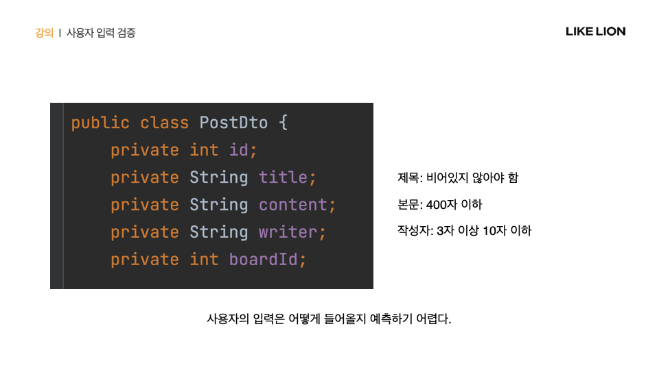 사용자의 입력이 어떻게 들어올지 예측하기 어렵기 때문에 사용자의 입력을 검증하는 것이 중요함